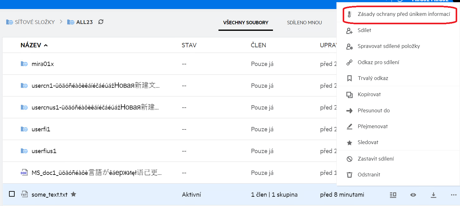 Pokud jste moderátorem síťové složky, můžete použít zásady ochrany před únikem informací na soubory v dané složce.