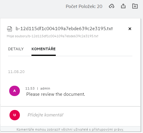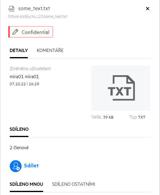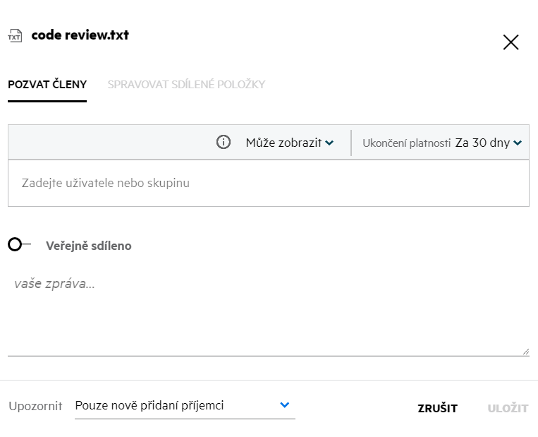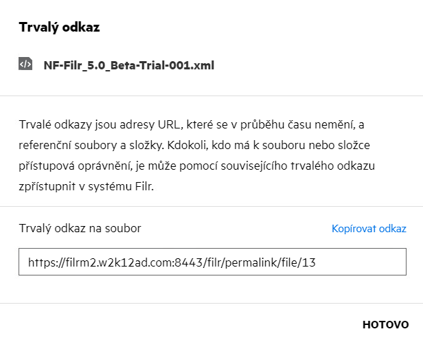 Odkaz pro sdílení: Soubor lze opakovaně sdílet pomocí odkazu pro sdílení.