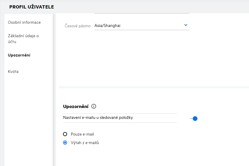 Když se uživatel blíží překročení datové kvóty nebo ji překročí, zobrazí se na profilové stránce uživatele upozornění, že se blíží k limitu kvóty. Jakmile dojde k překročení kvóty, uživatel obdrží také upozornění e-mailem.