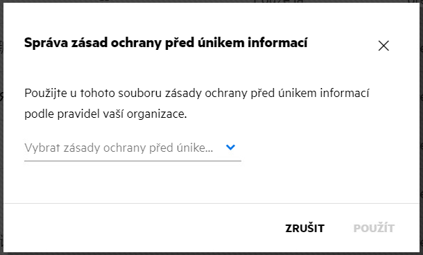 Pokud je funkce ochrany před únikem informací pro síťovou složku povolena, zásady nejsou použity na úrovni síťové složky a jste moderátorem síťové složky, můžete pro soubory v pracovním prostoru použít nebo odebrat zásady ochrany před únikem informací.