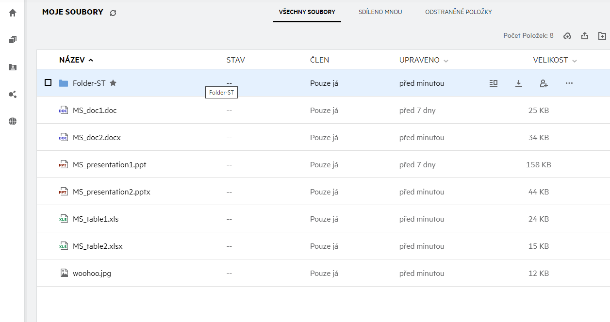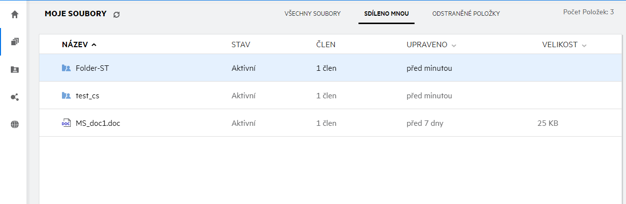 v podokně vlevo. Ve výchozím nastavení vidíte soubory a složky v této oblasti pouze vy. Správce pak určuje, jaká oprávnění máte k jejich sdílení. Všechny své soubory a složky tak máte pohodlně k dispozici na jednom místě.