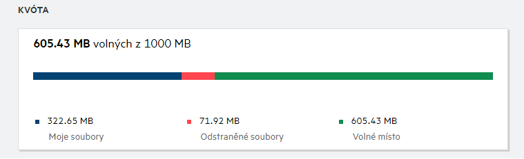 Kvóta ukazuje prostor využitý v systému Filr. Níže jsou uvedeny barevné indikátory: