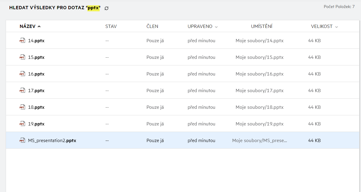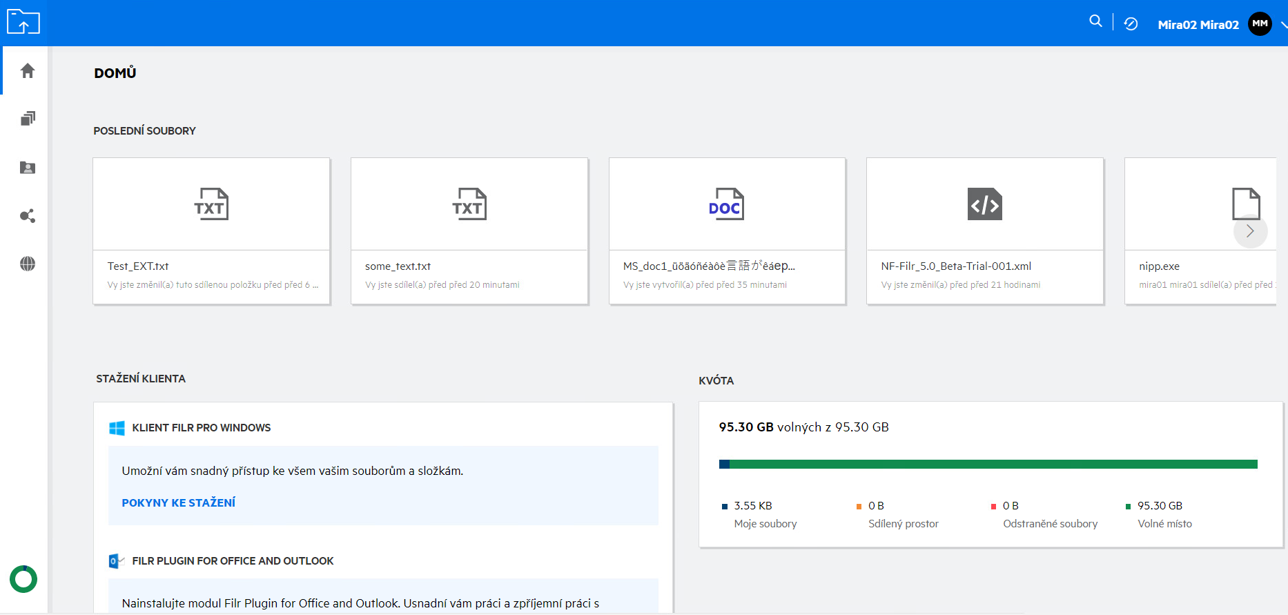 Všechny své soubory a složky máte pohromadě na jednom místě. V této části najdete položky, které jste nahráli do systému Filr nebo které jste sdíleli.