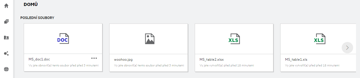 POSLEDNÍ SOUBORY: Ve výchozím nastavení se vypíšou soubory, s kterými pracoval přihlášený uživatel.