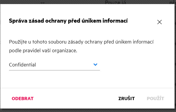 Pokud jsou pro síťovou složku povoleny zásady ochrany před únikem informací a na soubor v síťové složce jsou použity zásady, může moderátor zásady odebrat. Zásady odeberete následovně: