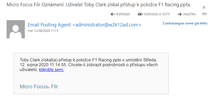 Obrázek 44 Oznámení o přístupu ke sdíleným položkám