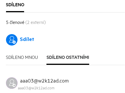 Při sdílení souboru se sloupec Členové v oblasti Moje soubory aktualizuje podle počtu členů nebo skupin, s kterými se soubor sdílí. Všechny soubory, které sdílíte, jsou také v příslušných oblastech uvedeny v části SDÍLENO MNOU. Pokud s vámi někdo sdílel nějaké soubory, budou uvedeny v oblasti SDÍLENO SE MNOU. Kliknutím na tlačítko