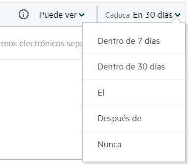 Caducidad: la fecha de caducidad del elemento compartido. Después de esta fecha, ya no tendrá acceso al elemento compartido.