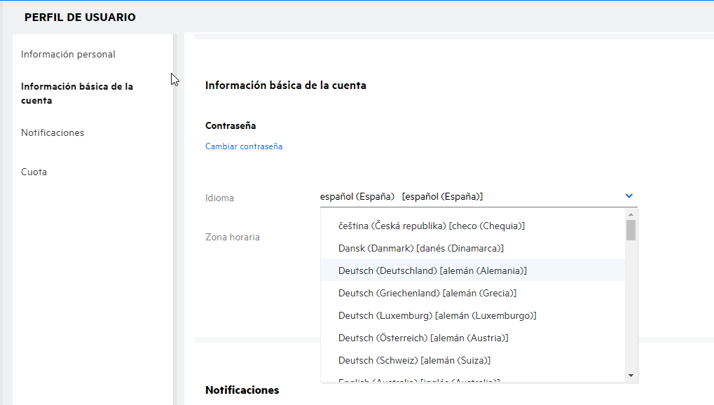 Cuando un usuario está a punto de superar la cuota de datos o la excede, aparece un mensaje de advertencia en la página del perfil de usuario informándole de que se está acercando al límite de la cuota de datos. Además, se envía una notificación por correo electrónico al usuario cuando se supera la cuota de datos.