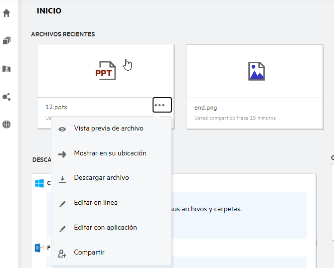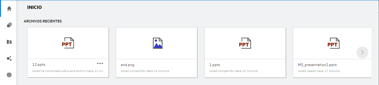ARCHIVOS RECIENTES: por defecto, se muestran los archivos a los que accede el usuario que ha entrado a la sesión.