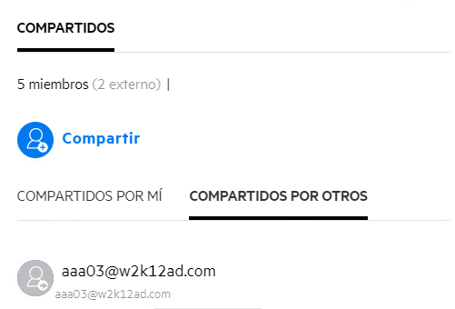 Compartido por: usuarios que compartieron el elemento con usted. Si son varios los usuarios que compartieron un elemento determinado con usted, se muestran todos.