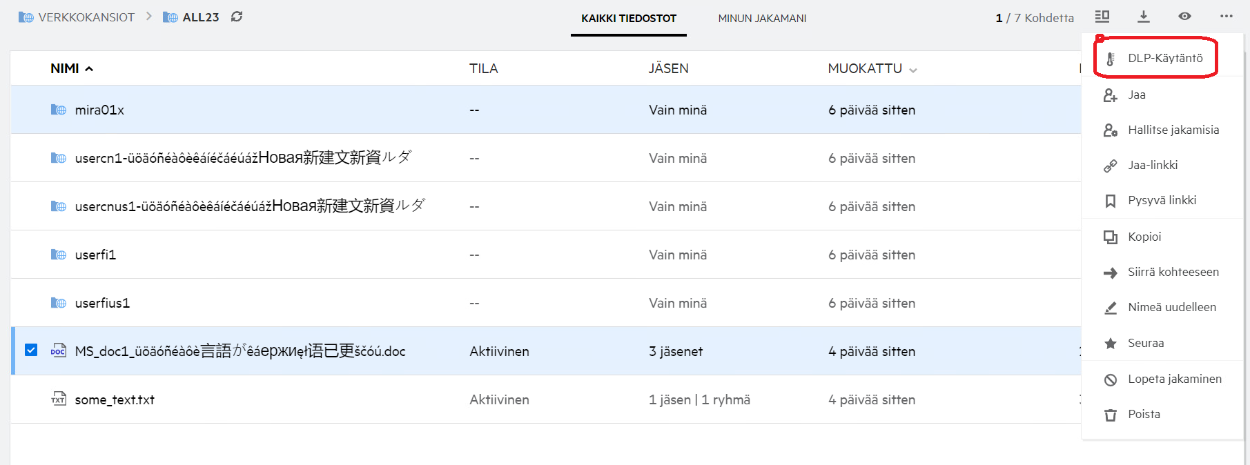 Mitä oikeuksia minulla on DLP:n hallintaan työalueellani (verkkokansio)?