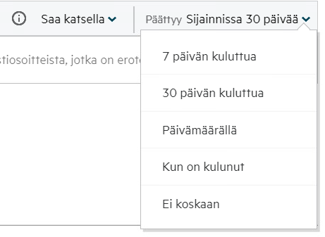Vanheneminen: Jaon vanhenemisen ajankohta. Tämän päivämäärän jälkeen sinulla ei enää ole oikeuksia jaettuun kohteeseen.