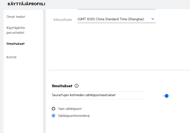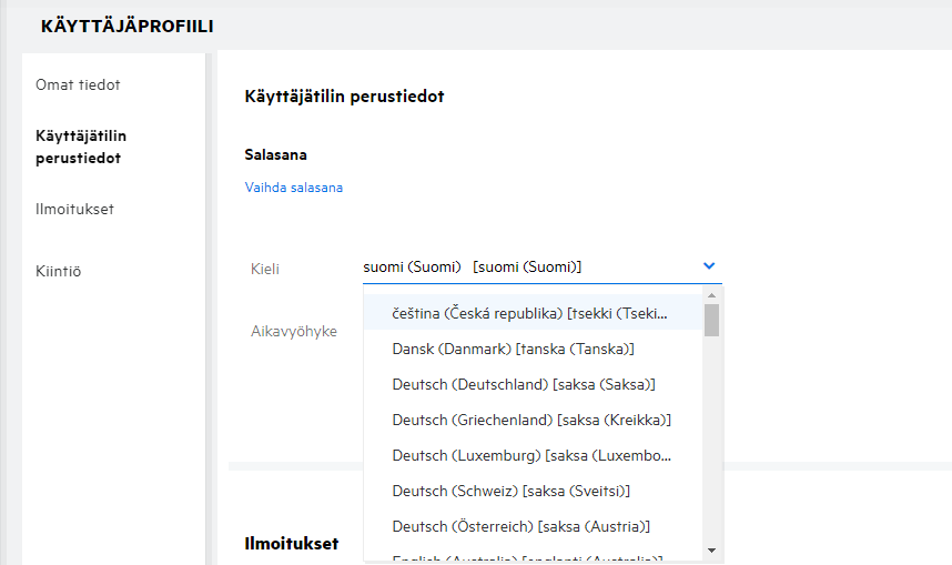 Valitse haluamasi vaihtoehto Saapumissivu-pudotusvalikosta Saapumissivun asetukset -kohdassa Omat tiedot -osassa.