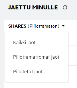 Näyttää tiedostot ja kansiot, jotka olet jakanut toisten käyttäjien kanssa. Tällä alueella voit hallinnoida toisten käyttäjien oikeuksia jakamiisi tiedostoihin. Voit poistaa käyttöoikeudet, lisätä oikeuksia ja niin edelleen.