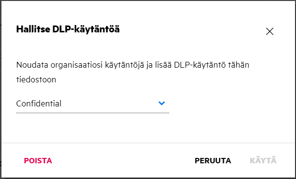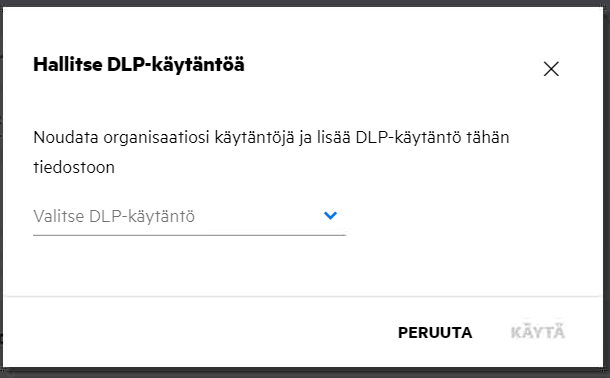 Valitse DLP-käytäntö > Lisää toimintoja -valikosta. DLP-käytännön hallitseminen -valintaikkuna näytetään.