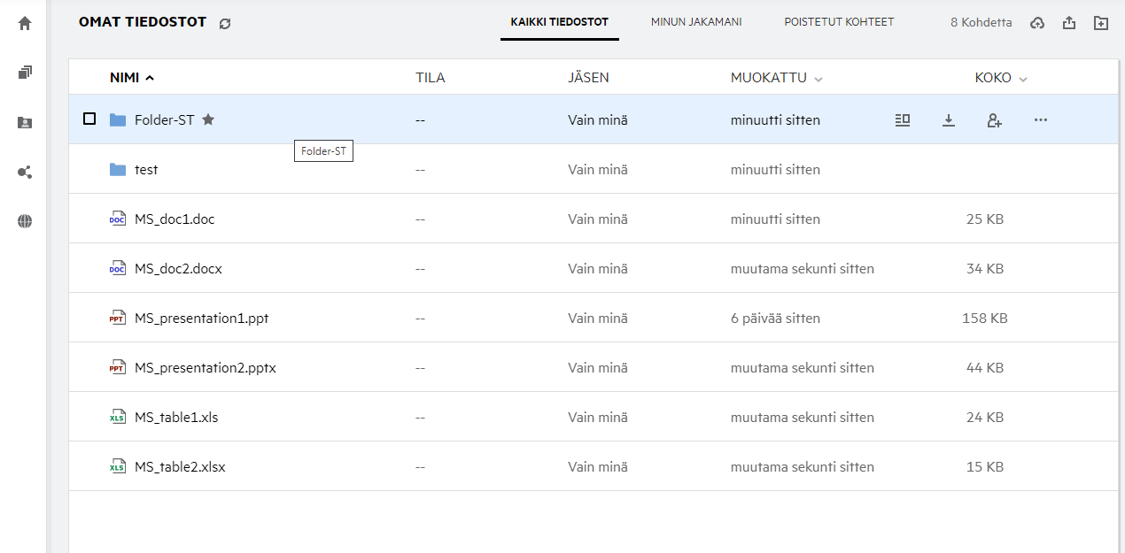 Nähdäksesi Omat tiedostot -alueen, napsauta vasemman sivupalkin kuvaketta