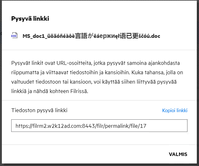 Jakolinkki: Tiedoston voi uudelleenjakaa käyttämällä jakolinkkiä.