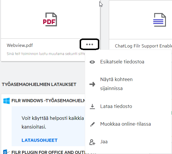 Voit myös tehdä joitakin perustoimintoja tiedostolle suoraan luettelossa: