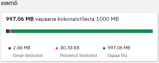 Datakiintiöön lasketaan vain tiedostot. Käyttäjän datakiintiöön ei lasketa tyhjiä kansioita ja Verkkokansioissa olevia tiedostoja.