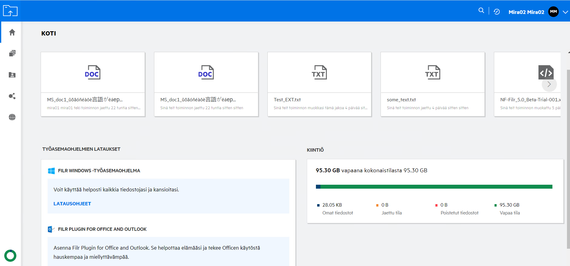 Kuva 2 Omat tiedostot -alue