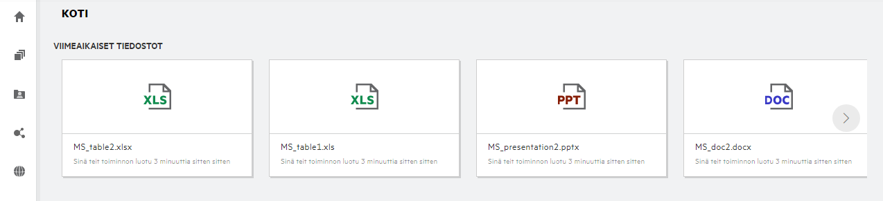 VIIMEISIMMÄT TIEDOSTOT: Näyttää oletuksena luettelon tiedostoista, joita kirjautunut käyttäjä on käyttänyt.