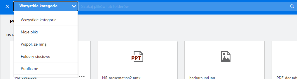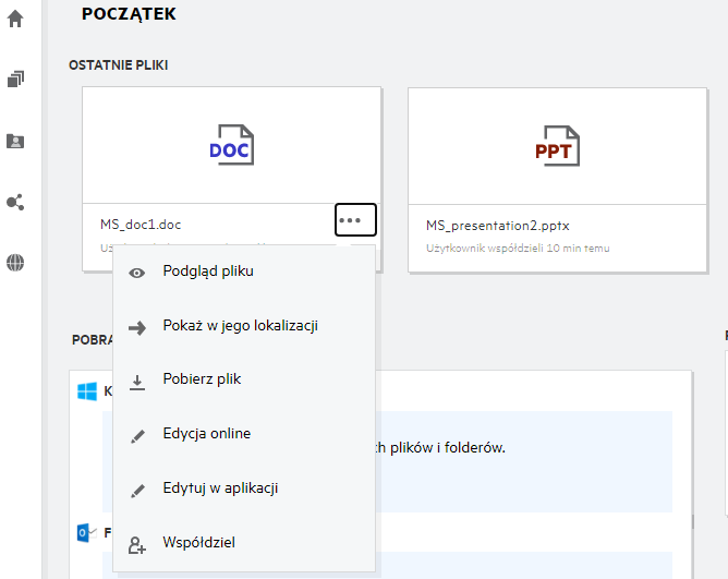 OSTATNIE PLIKI: Domyślnie jest to lista plików, do których uzyskał dostęp zalogowany użytkownik.