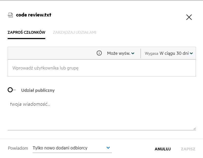 Łącze współdzielenia: Plik można współdzielić wtórnie przy użyciu łącza współdzielenia.
