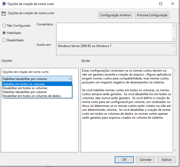 Clique duas vezes em Short name creation options (Opções de criação de nomes curtos).