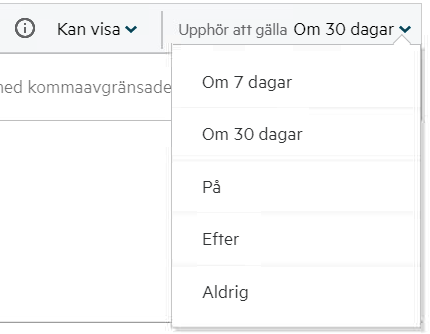 Upphörandetid: Det datum då delningen upphör. Efter det här datumet har du inte längre behörighet till det delade objektet.