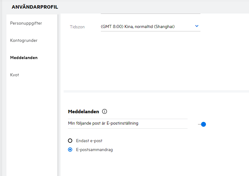 När en användare närmar sig att överskrida datakvoten visas ett varningsmeddelande på användarens profilsida om att användaren närmar sig datakvotgränsen. Dessutom skickas en e-postavisering till användaren när datakvoten överskrids.