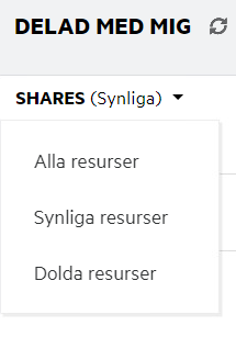 Behörighet: Vilken behörighetsnivå du har till det delade objektet. Beroende på vilken åtkomstbehörighet du har beviljats till objektet kan du visa, redigera eller dela objektet. Om det objekt som delades med dig är en mapp kan du kanske även hantera filer i mappen.