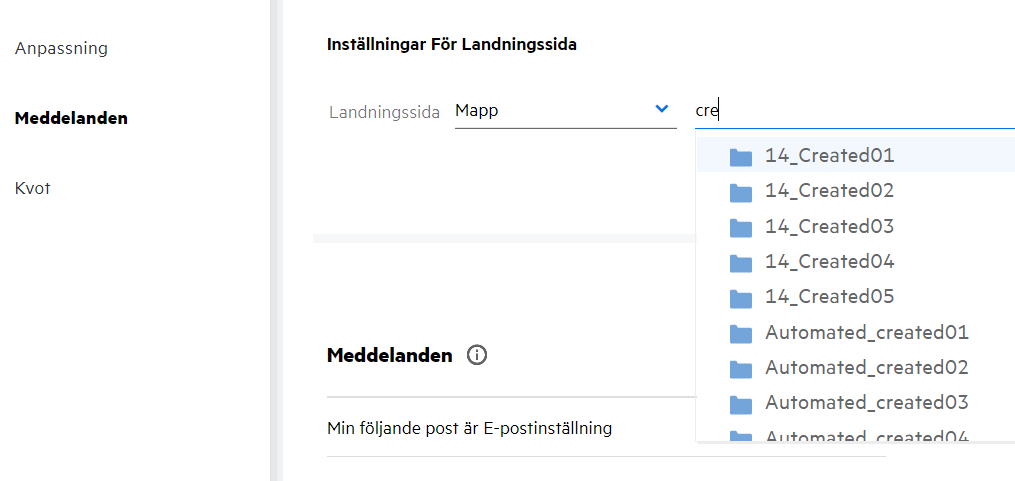 Om den mapp som angetts som landningssida byter namn visas det ändrade värdet i landningssidinställningarna och inställningen bevaras.