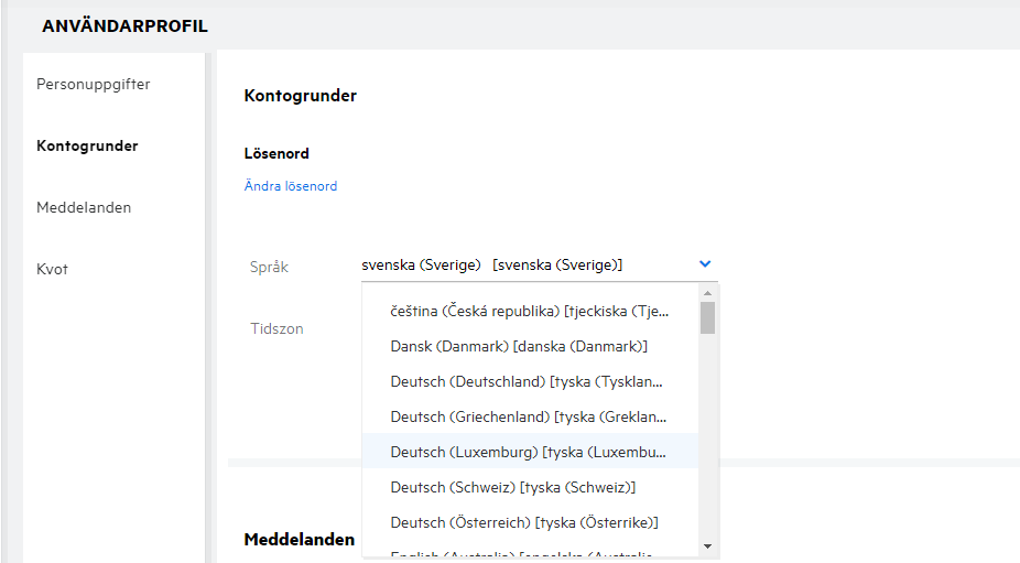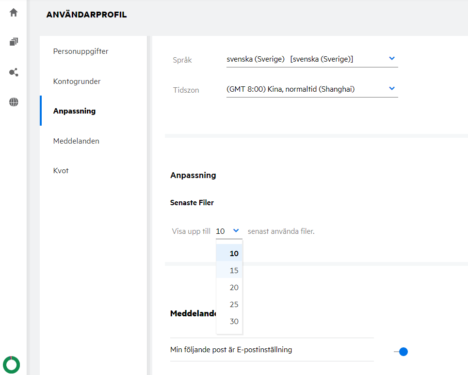 Det antal filer som ska visas i listan över senaste kan konfigureras. Du konfigurerar inställningarna genom att gå till din Användarprofil.