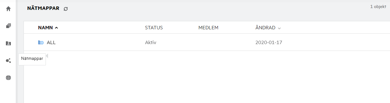 i fönstret på vänster sida. Nätmappar ger tillgång till din organisations filsystem. Filr-administratören bestämmer vilka nätmappar du kan se och vilka delningsbehörigheter du har i dem. Nätmappar är inte tillgängliga i fönstret på vänster sida om Filr-administratören inte har tilldelat några nätmappar.