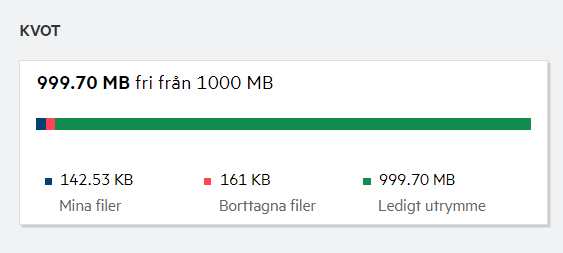 Endast filer räknas mot datakvoten. Tomma mappar och filerna i Nätmappar räknas inte mot användarens datakvot.