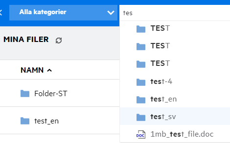 Du kan utföra sökåtgärder på filer och mappar baserat på de åtkomstbehörigheter som du har för varje objekt. Söksträngen bör innehålla minst 3 tecken så att Filr kan börja söka innehållet.