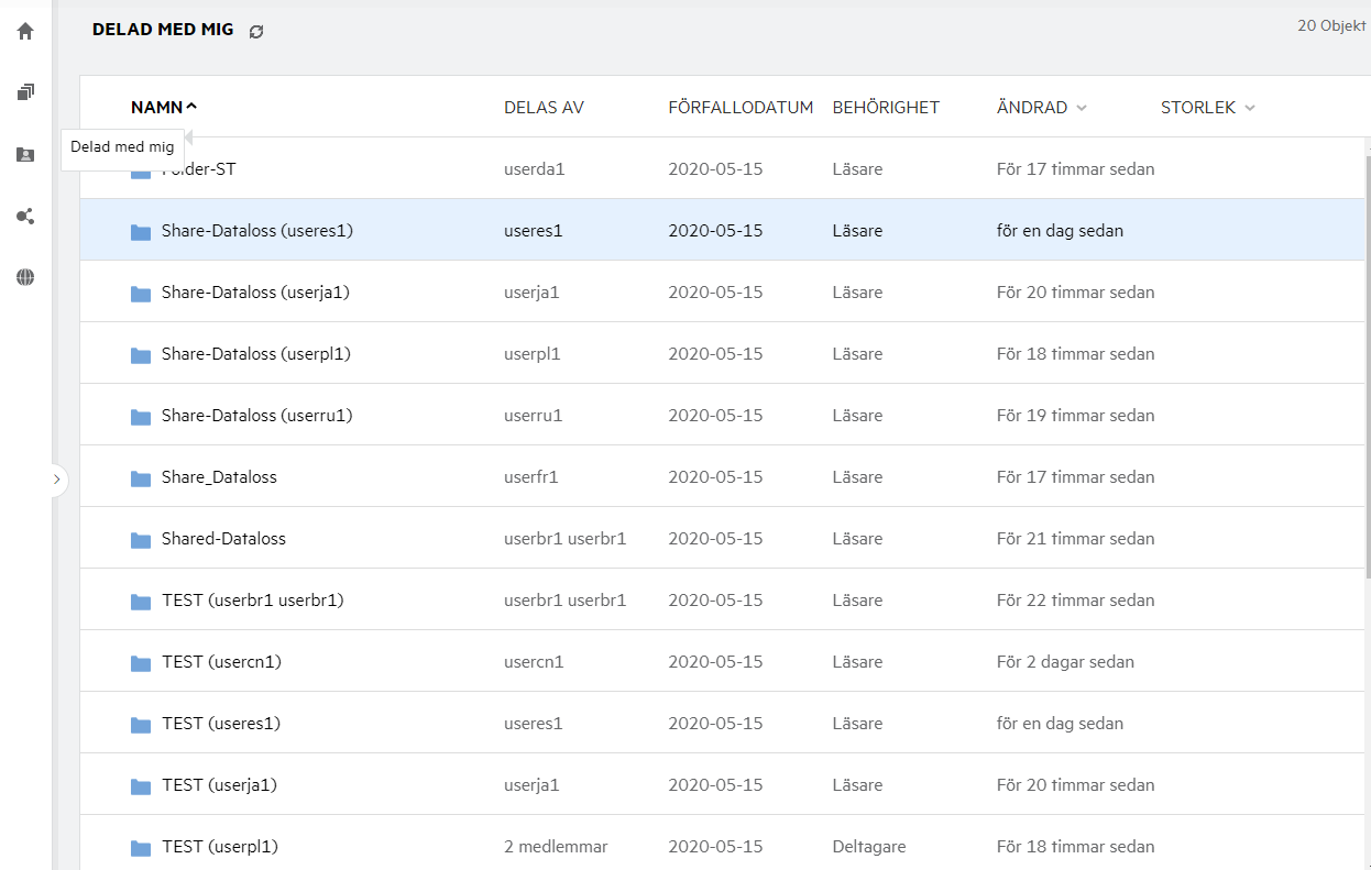 i fönstret på vänster sida. Här visas alla och mappar som andra användare har delat med dig.