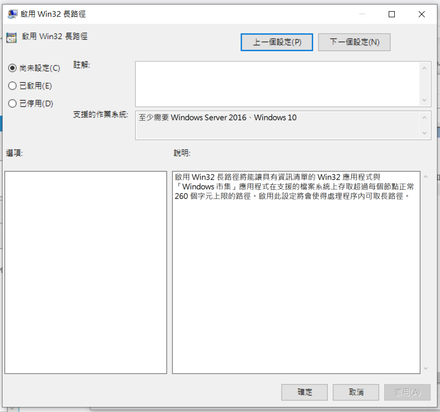 執行下列程序時,Power Shell 將適用於「長路徑」功能:
