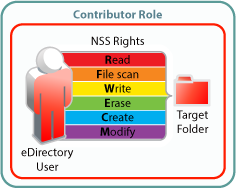 For eDirectory users to function in Net Folder roles, they must have the NSS rights illustrated and explained in Table 4-2. If the minimum requirements for the Net Folder Viewer role are not met, they have no access through Filr as explained in Net Folder Role Requirements Are Rigidly Enforced.