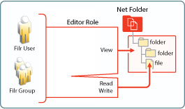 The file system and library rights required for each Net folder role are illustrated and explained in the following sections.