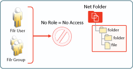 For Filr users to access Net Folders, Filr administrators must simply grant them access. Granting access is the only Net Folder access control mechanism in Filr. Net Folder Roles are not assigned; they are derived from the access rights that users have on the target file systems, as outlined in the sections that follow.