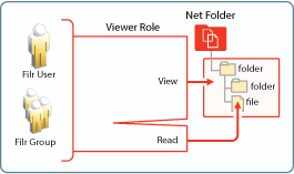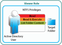 For Active Directory users to function in Net folder roles, they must have the NTFS file system permissions illustrated and explained in Table 4-3. If the minimum requirements for the Net Folder Viewer role are not met, they have no access through Filr as explained in Net Folder Role Requirements Are Rigidly Enforced.