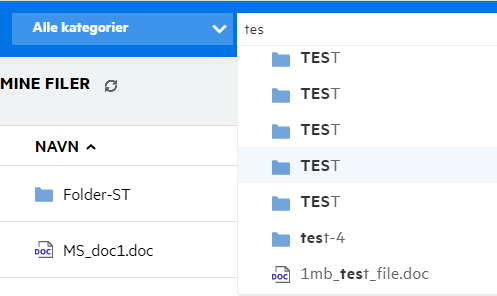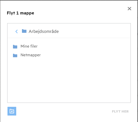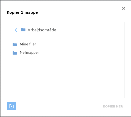 ikonet Mine filer i venstre rude. Filer og mapper i dette område vises som standard kun for dig, og din administrator bestemmer delingsrettighederne til dem. Alle dine filer og mapper gemmes på ét sted.