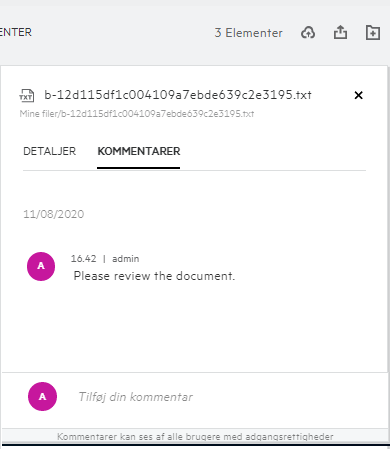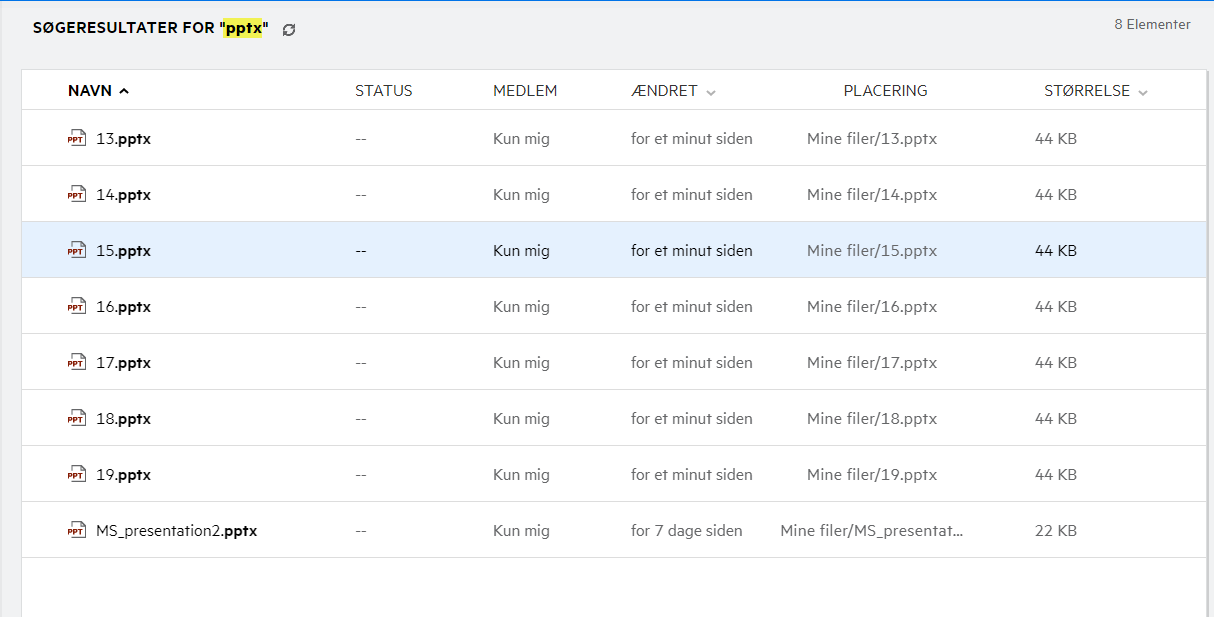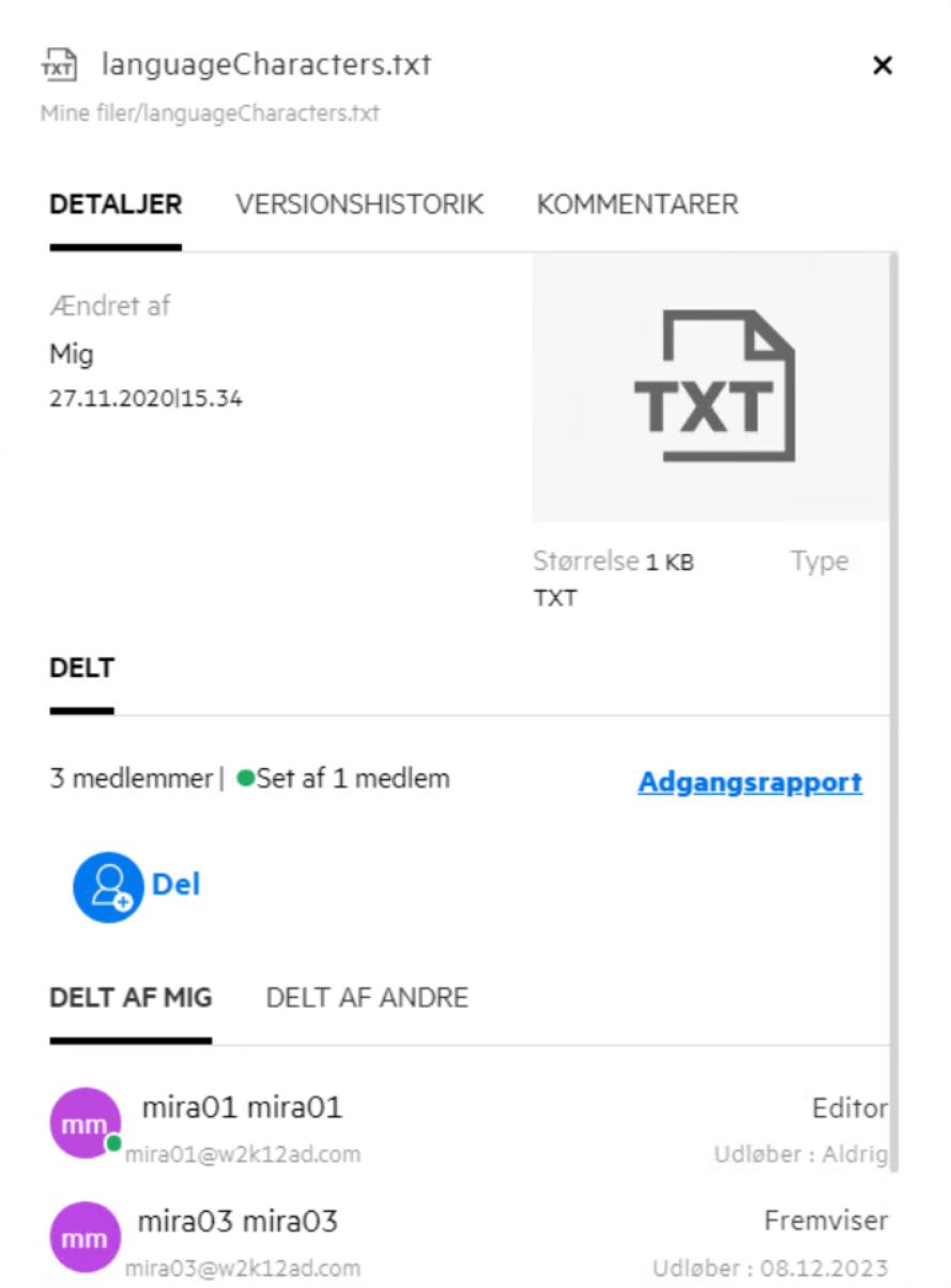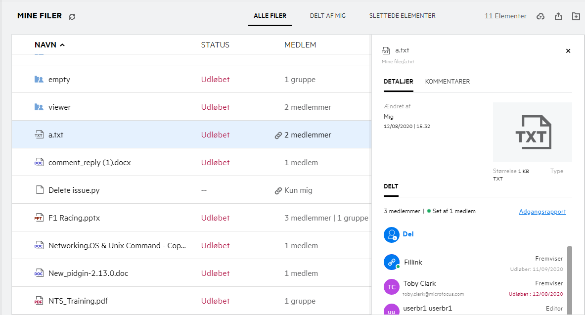 Status (Status): Status på fil eller mappe – Expired (Udløbet) eller Active (Aktiv).