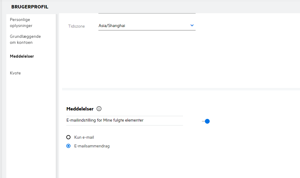 Når en bruger er ved at overskride eller overskrider datakvoten, vises der en advarsel på brugerens profilside med oplysninger om, at han eller hun er ved at nærme sig grænsen for datakvoten. Der sendes også en e-mail til brugeren, når datakvoten er overskredet.