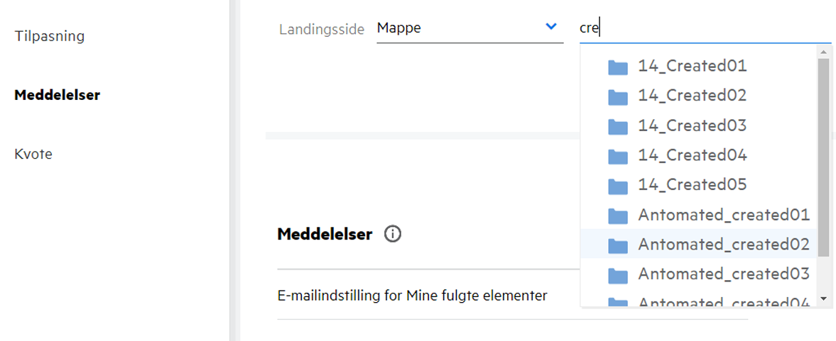 Startsiden er standardlandingssiden, og den kan tilpasses. Du kan indstille Filr-arbejdsområder (undtagen Offentlige) eller mapper i arbejdsområder som en landingsside. Når du logger på Filr efter konfigurationen, lander du på den mappe eller det arbejdsområde, der er angivet som standardlandingsside. Udfør følgende trin for at konfigurere Opsætning af landingsside:
