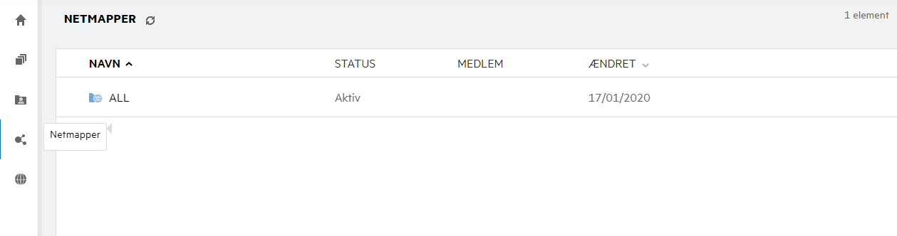ikonet Netmapper i ruden til venstre. Netmapper giver adgang til din organisations filsystem. Filr-administratoren definerer, hvilke Netmapper du kan se, og hvilke delingsrettigheder du har til dem. Netmapper er ikke tilgængelige i ruden til venstre, hvis Filr-administratoren ikke har tildelt netmapper.