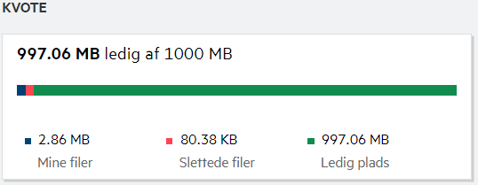 Det er kun filer, der tælles med i datakvoten. Tomme mapper og filerne i netmapperne tælles ikke med i brugerens datakvote.