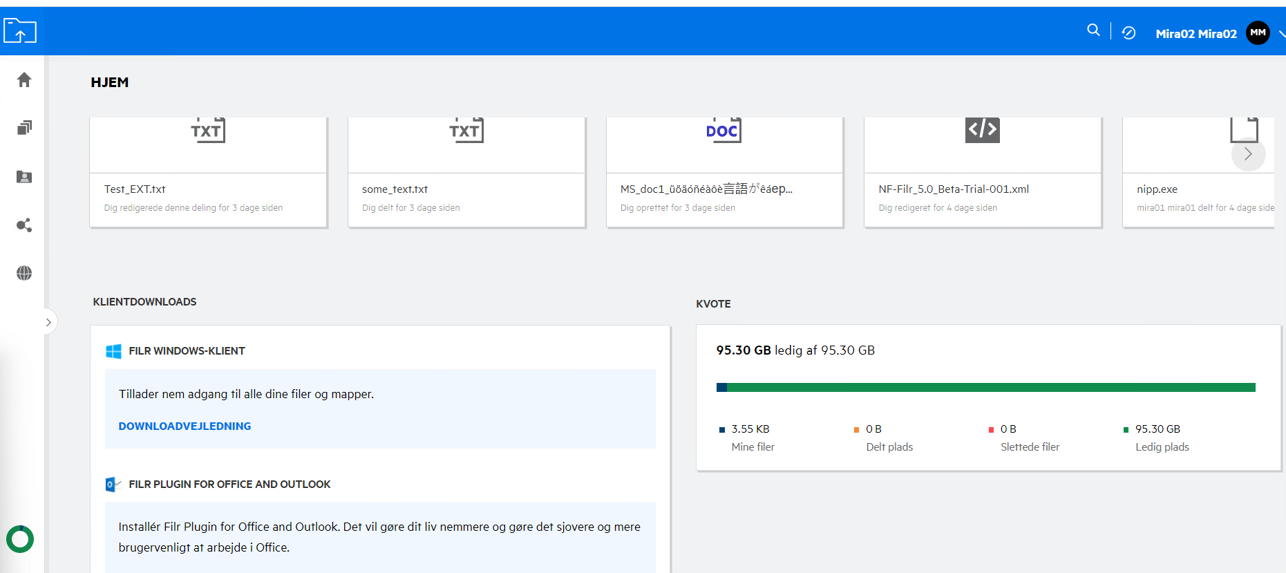 Alle dine filer og mapper samlet på ét sted. De elementer, som du har uploadet til Filr eller som deles af dig, er angivet i denne sektion.